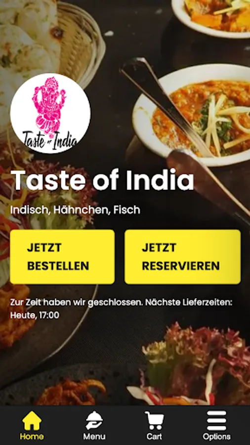 With the Taste of India Mobile App you can enjoy delicious dishes from the comfort of your home. Browse through our menu, choose the dishes you like and place your order in seconds.
