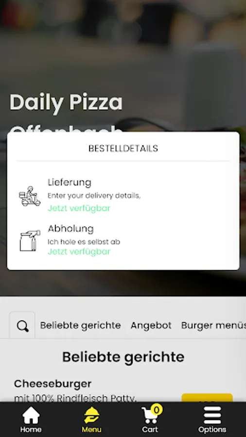 With the Daily Pizza Offenbach Mobile App you can enjoy delicious dishes from the comfort of your own home. Browse our menu, choose the dishes you like and place your order in seconds.