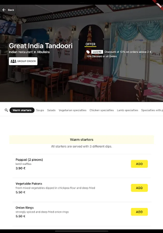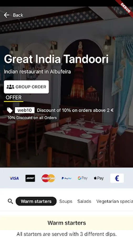 - Browse the restaurant menu and preview all customizable options