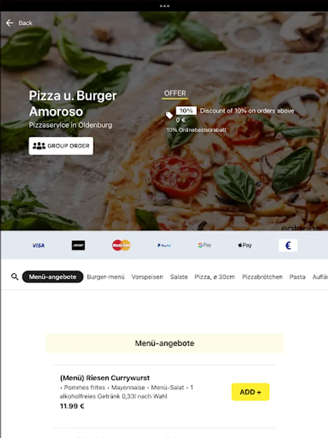 With the IPizza & Burger Amoroso Mobile App, you can enjoy Italian, Indian, lunch specials from the comfort of your home. Browse our menu, choose the dishes you like and place your order in seconds.