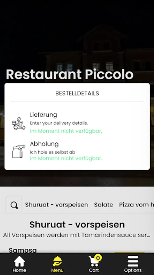 With the Restaurant Piccolo Mobile App you can enjoy delicious dishes from the comfort of your own home. Browse our menu, choose the dishes you like and place your order in seconds.