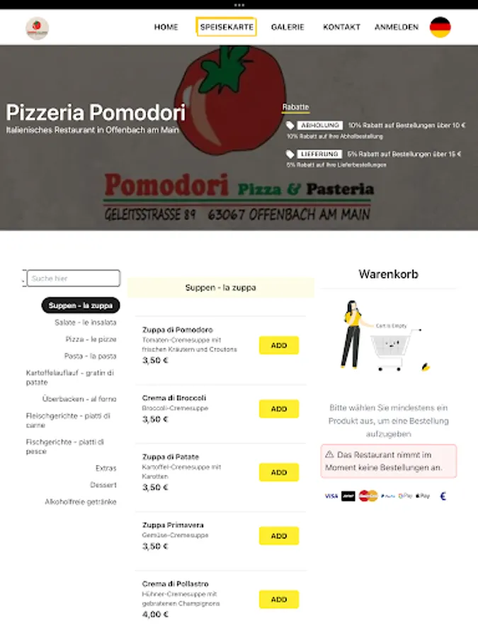 Your dream meal is just a few taps away. Download the Italian restaurant in Offenbach am Main app today.