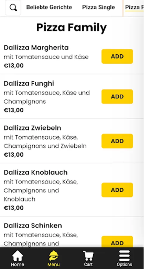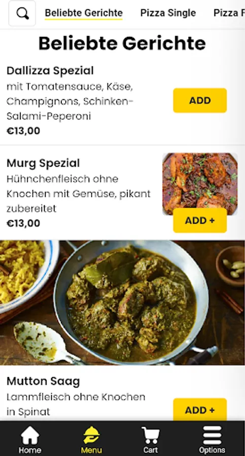 - Durchsuchen Sie die Speisekarte des Restaurants und sehen Sie sich alle anpassbaren Optionen im Voraus an