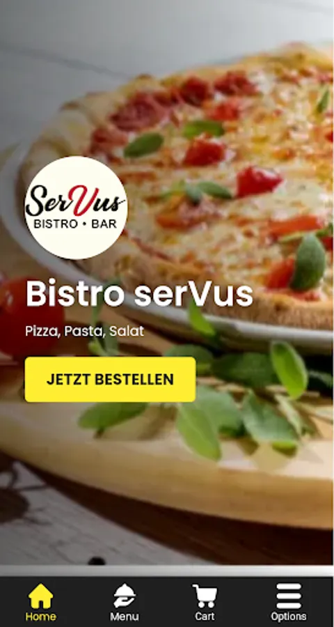 With the Bistro serVus mobile app you can enjoy your pizza, pasta, salad from the comfort of your home. Browse through our menu, choose the dishes you like and place your order in seconds.