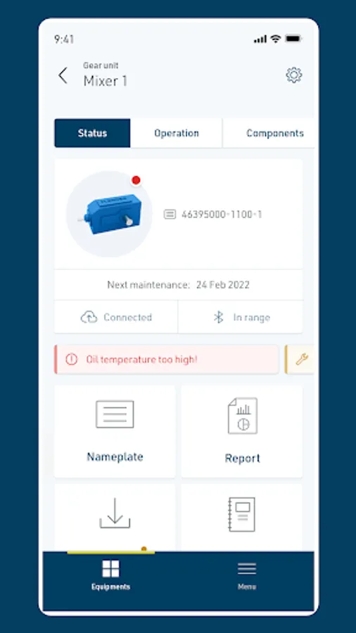 Operate the AIQ Core device at your Flender gear unit on site. Simply connect via Bluetooth when in proximity.