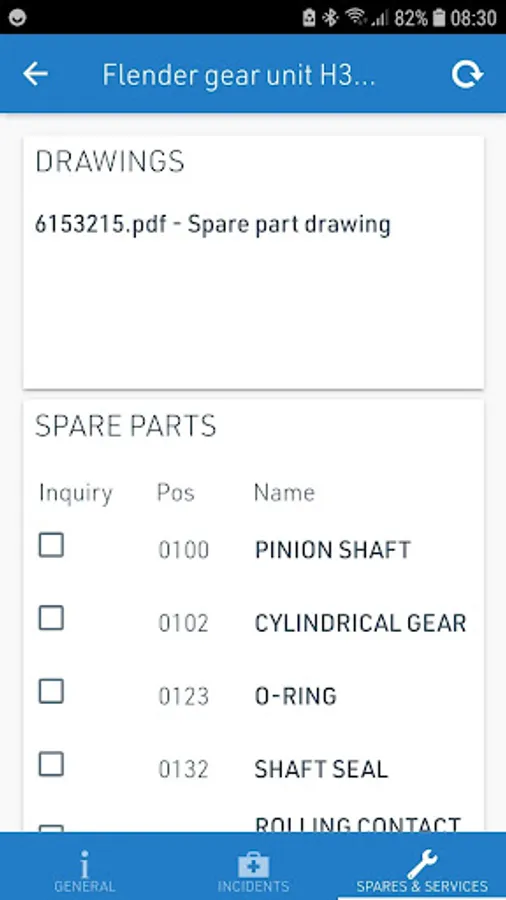 With the DX Assist App you can register Flender gear units and Flender couplings in the App, assign these gear units to their mounting place and view gear unit and coupling specific spare parts lists. You can select spare parts and ask for an offer.