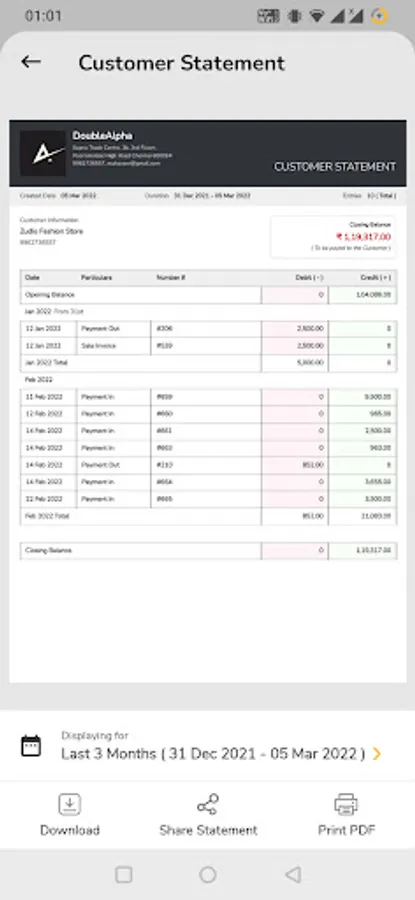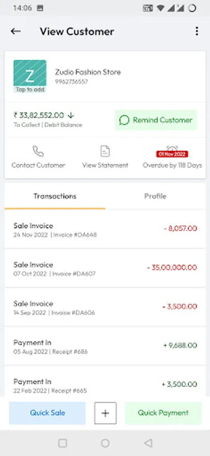 + Keep track of your pending payments and send your customers gentle payment reminders through whatsapp, text message, etc.