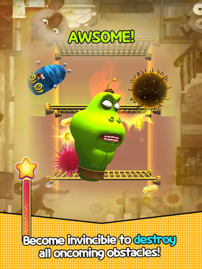 ★ Consume sausages, obtain coins and challenge for higher floors. Become invincible to destroy all oncoming obstacles!