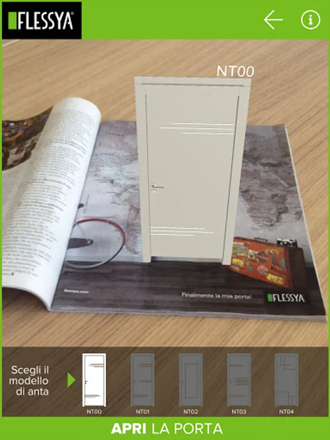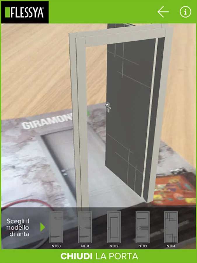 Flexya AR uses the camera of your smartphone or tablet to recreate the Augmented Reality product, the trendiest technology of the moment, and thus allow you to see the Flexya doors in their three dimensions, as if they were really in front of you.