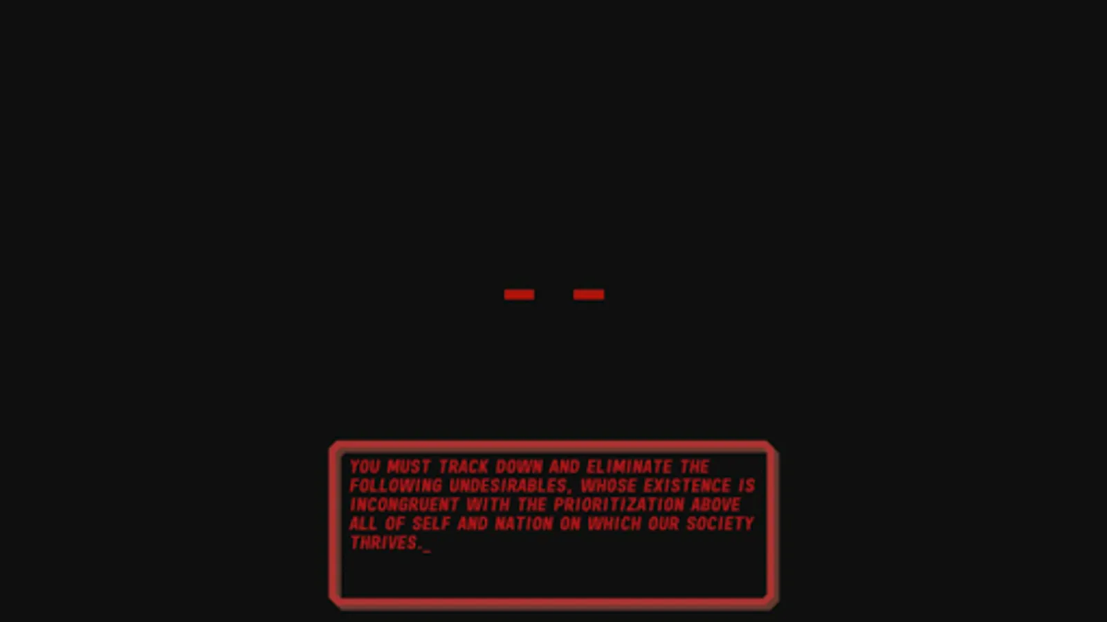YOU MUST TRACK DOWN AND ELIMINATE FOUR UNDESIRABLES, WHOSE EXISTENCE IS INCONGRUENT WITH THE PRIORITIZATION ABOVE ALL OF SELF AND NATION ON WHICH OUR SOCIETY THRIVES.
