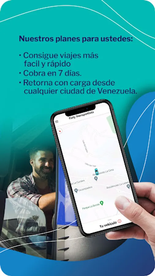 Somos la primera app en Venezuela que conecta a conductores y/o empresarios de la industria del transporte de carga con personas o empresas que buscan mover su carga de manera inmediata o programada. Esta conexión se realiza en tiempo real y le permitirá al conductor/empresa la posibilidad de programación de viajes ida y vuelta. Esto aumentará la eficiencia de tus costos y el número de viajes que podrá realizar en un período de tiempo determinado.