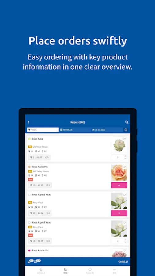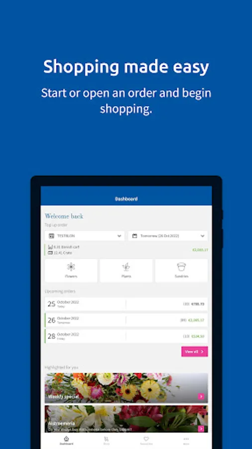 With the DGI app for phone as well as tablet, you always have direct access to a wide selection of daily fresh products. You can also view orders, top up or create new orders from any location: on the road, from your holiday destination, the shop, or from the comforts of your own home. The DGI app offers everything wholesale companies need for quick and easy stock management.