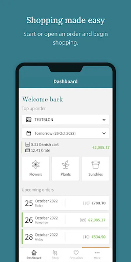 • View previous orders, repeat or create new orders