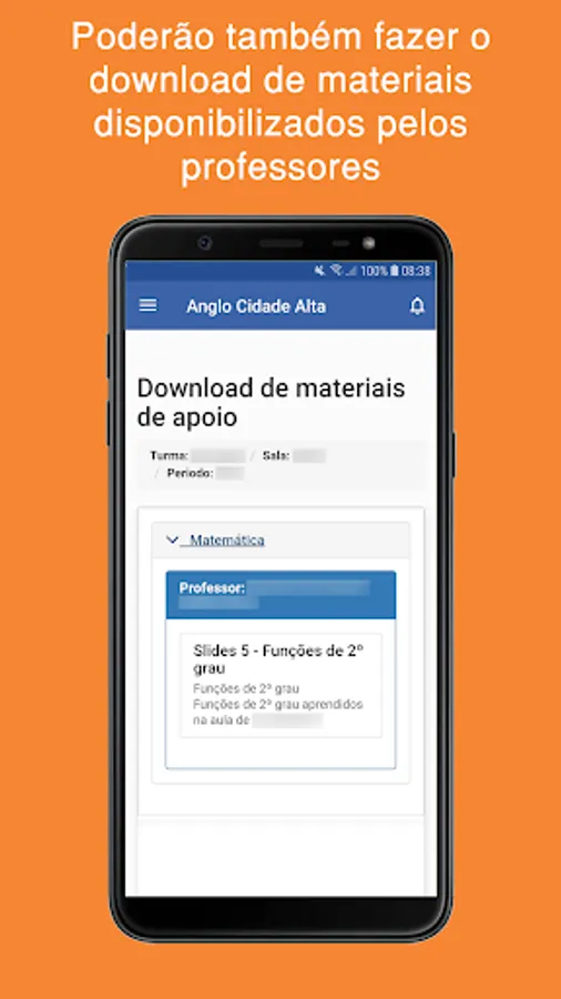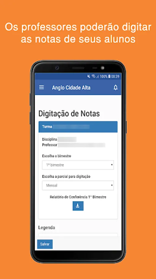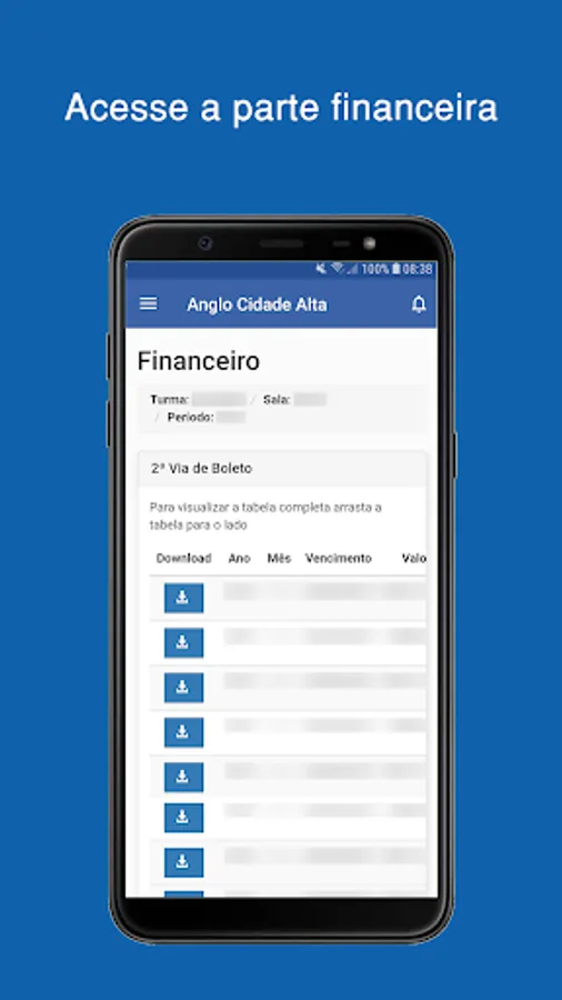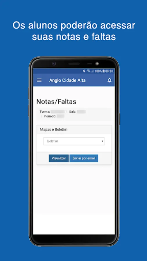 Students will be able to access their notes and faults, as well as issue the 2nd Bank Ticket Track and download materials sent by the teachers and have access to the messages and announcements sent by the college.