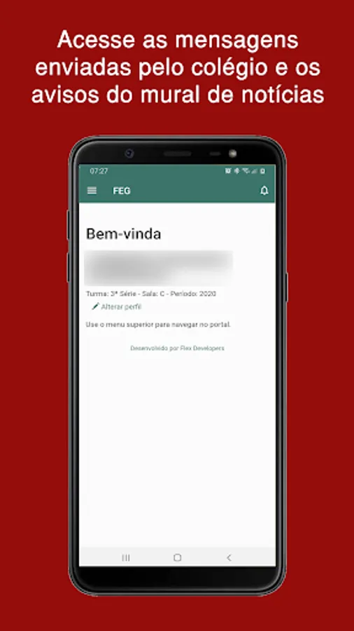 The student will be able to access his grades and absences and have access to the announcements and school board.