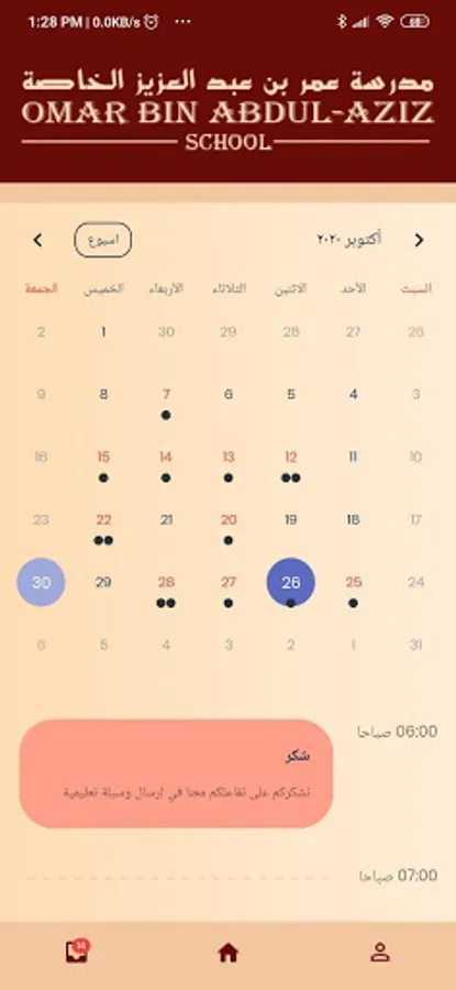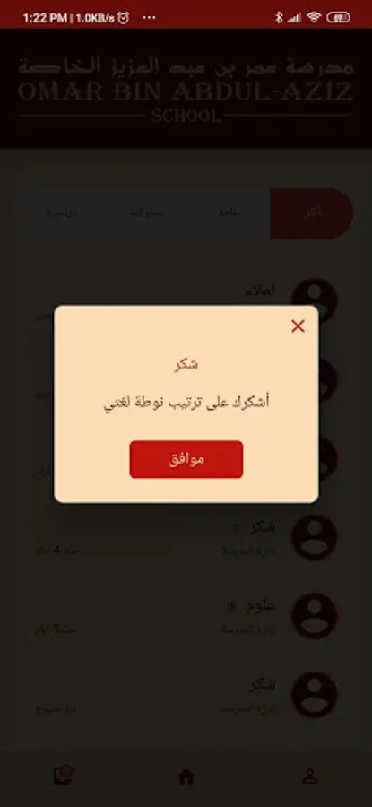 This app helps the parents of the students of Omar bin Abdulaziz Private School to know their children's academic, behavioral and general conditions through daily notifications sent via mobile phones and to facilitate communication with the school administration and mentors of the students and to keep an eye on the student’s educational development and his work record during the school year.