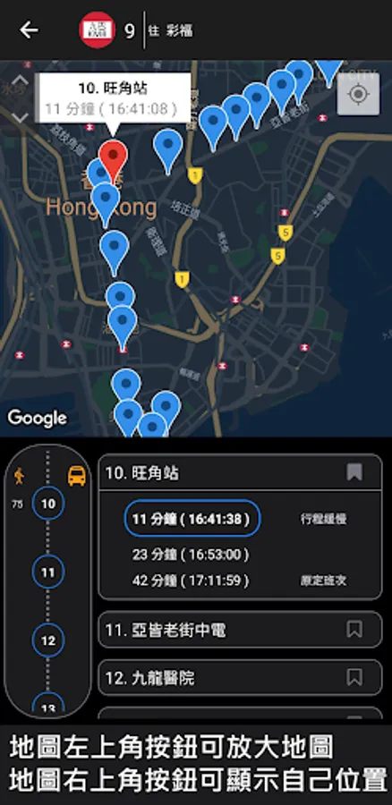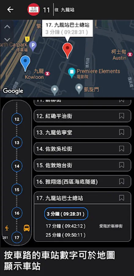 Note: The current version only provides information on KMB routes