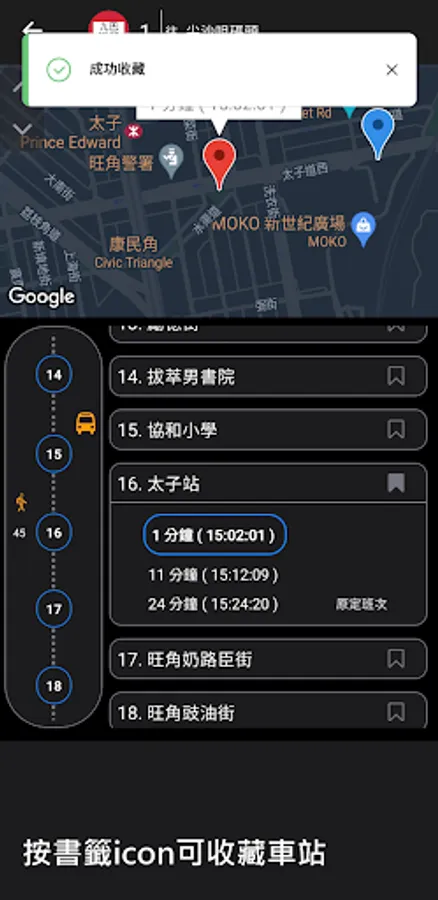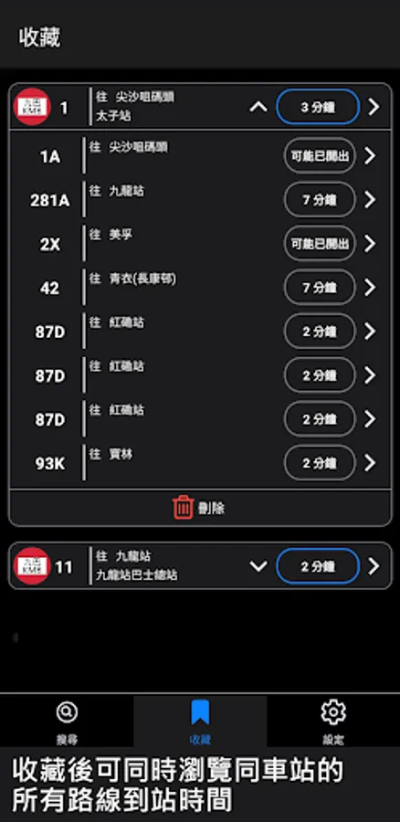 2. Collect bus stops for quick browsing of information and view the real-time arrival time of all bus routes at the same stop