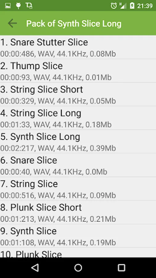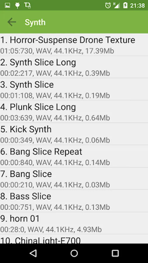 Free Sounds is unofficial freesound.org client for Android. Freesound is a large collection of free samples and loops: drums, synths, basses, piano, strings, dubstep loops, etc. With Free Sounds you can explore and download sounds from Freesound database.