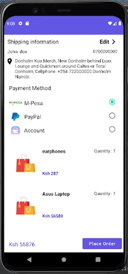 A online shopping app where users can view products, add to cart, checkout and pay to complete order. Sellers can also sell their products via the platform.