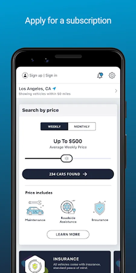 Download the app: Sign up in minutes to browse cars.