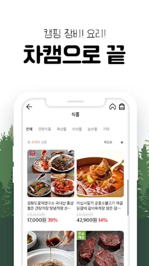 캠핑용품, 캠핑식품등 캠핑에 대한 모든 상품들을
