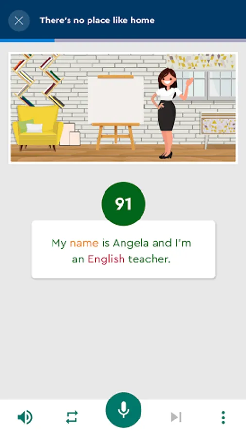 At Flexge the student is actively studying English. Through an advanced voice recognition system, the student speaks English from the first unit and compares his pronunciation with the speech of over 100 natives from different locations.