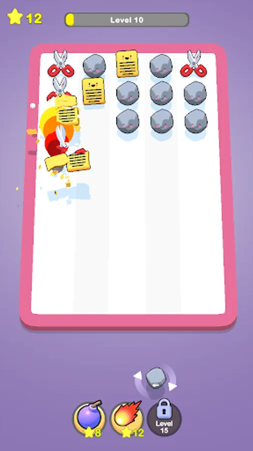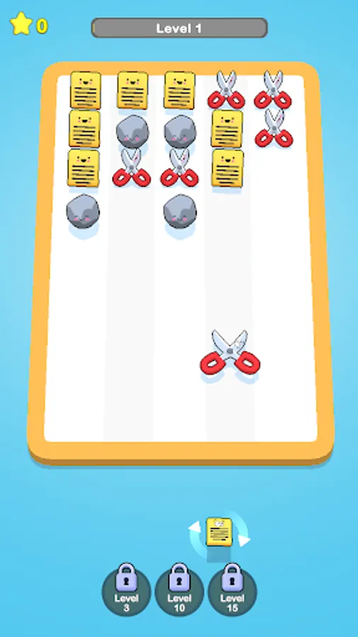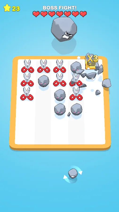 The gameplay is simple; grab and aim one of the Rock, Paper, Scissors and shoot them to the opposite object. Scissors tear the Paper but can't beat Rock and Paper beats Rock.