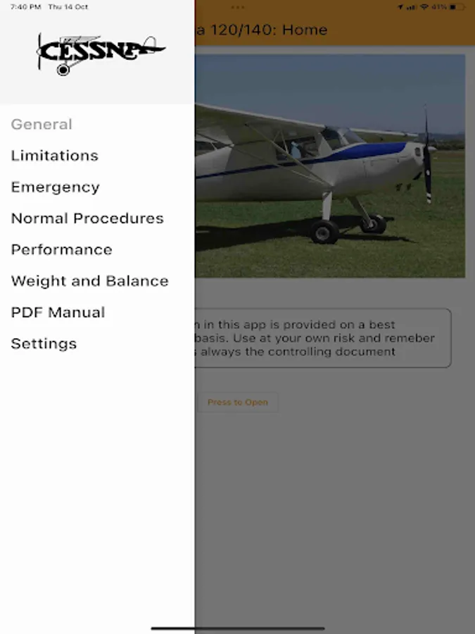 Tools and Flight manual for Cessna 120 and 140 aircraft.