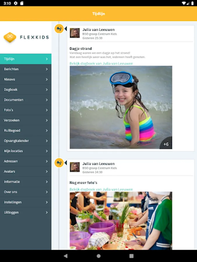 With the Flexkids Parent app you can watch the experiences of your child at the daycare. You can view photos, read messages from the group and location and follow the care of your child.