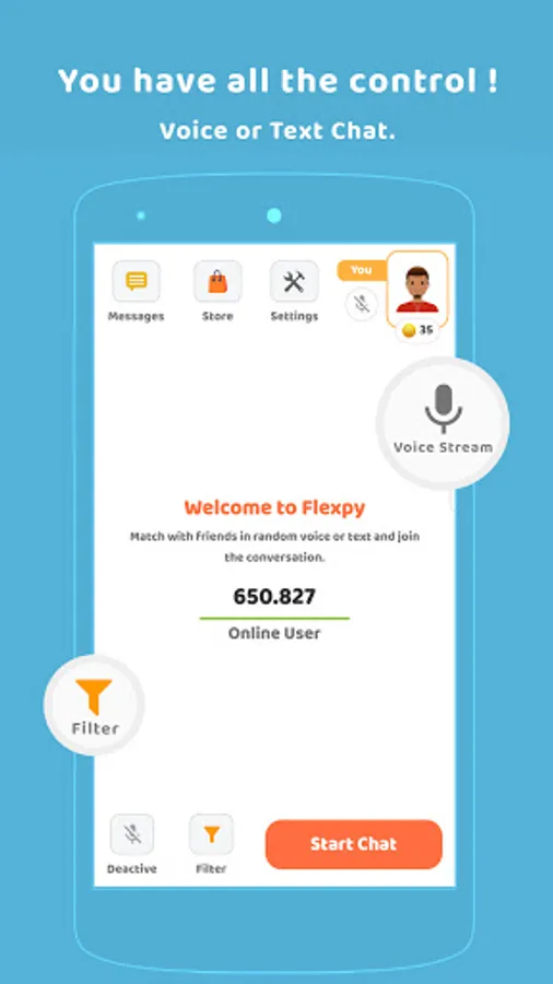 With the Flexpy app, you can make new friends with voice and text chat from anywhere in the world.