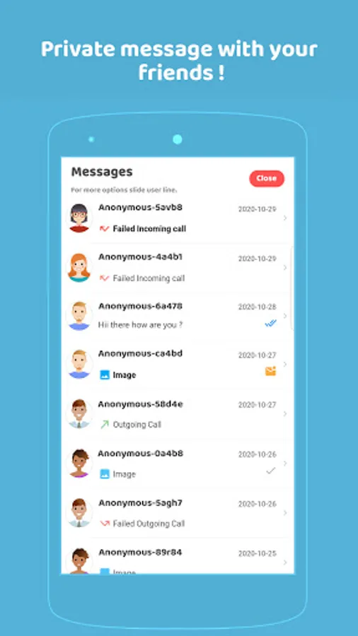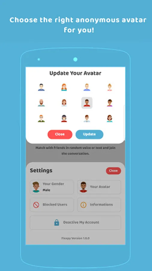 Choose the appropriate avatar picture for you and message anonymously.