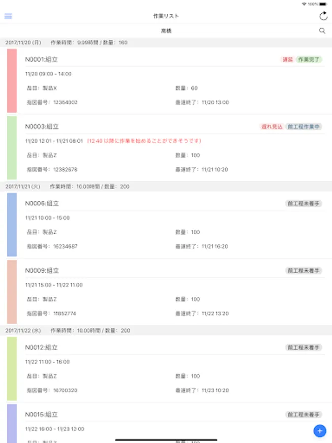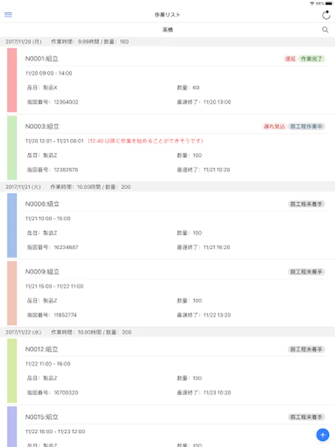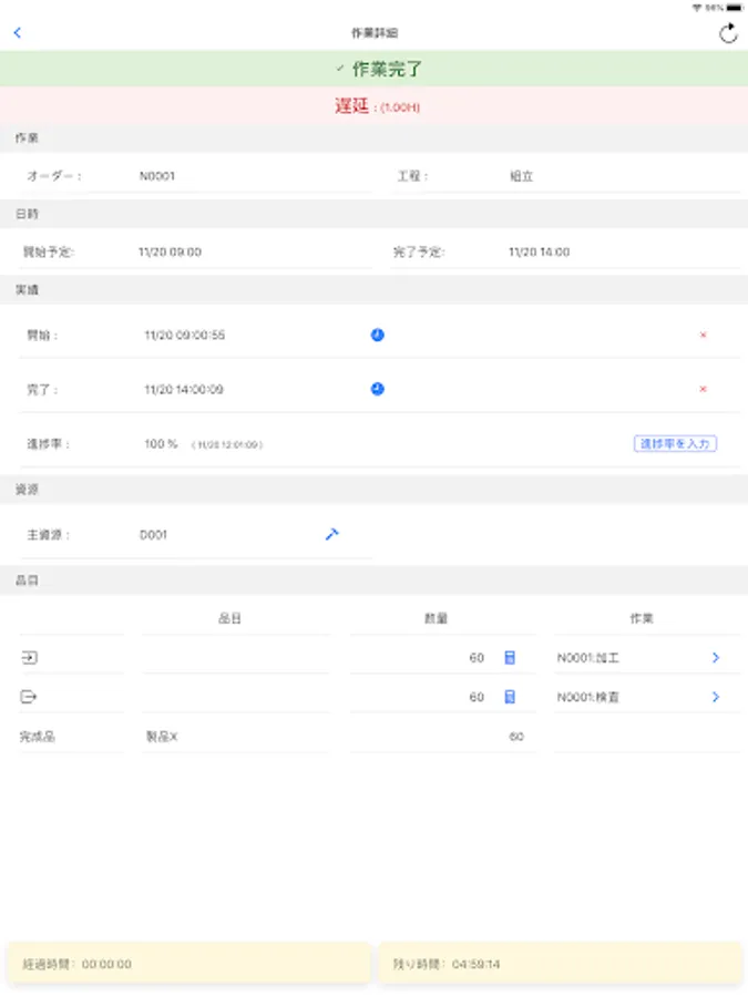 The plan data created in the production scheduler is exported to the server, and the plan can be viewed in real-time using the app installed on a mobile device by accessing the server. Work is performed according to the obtained plan, and progress is entered and sent to the server. Each device can share progress on each other's work and check for any delays in the work process in real-time.