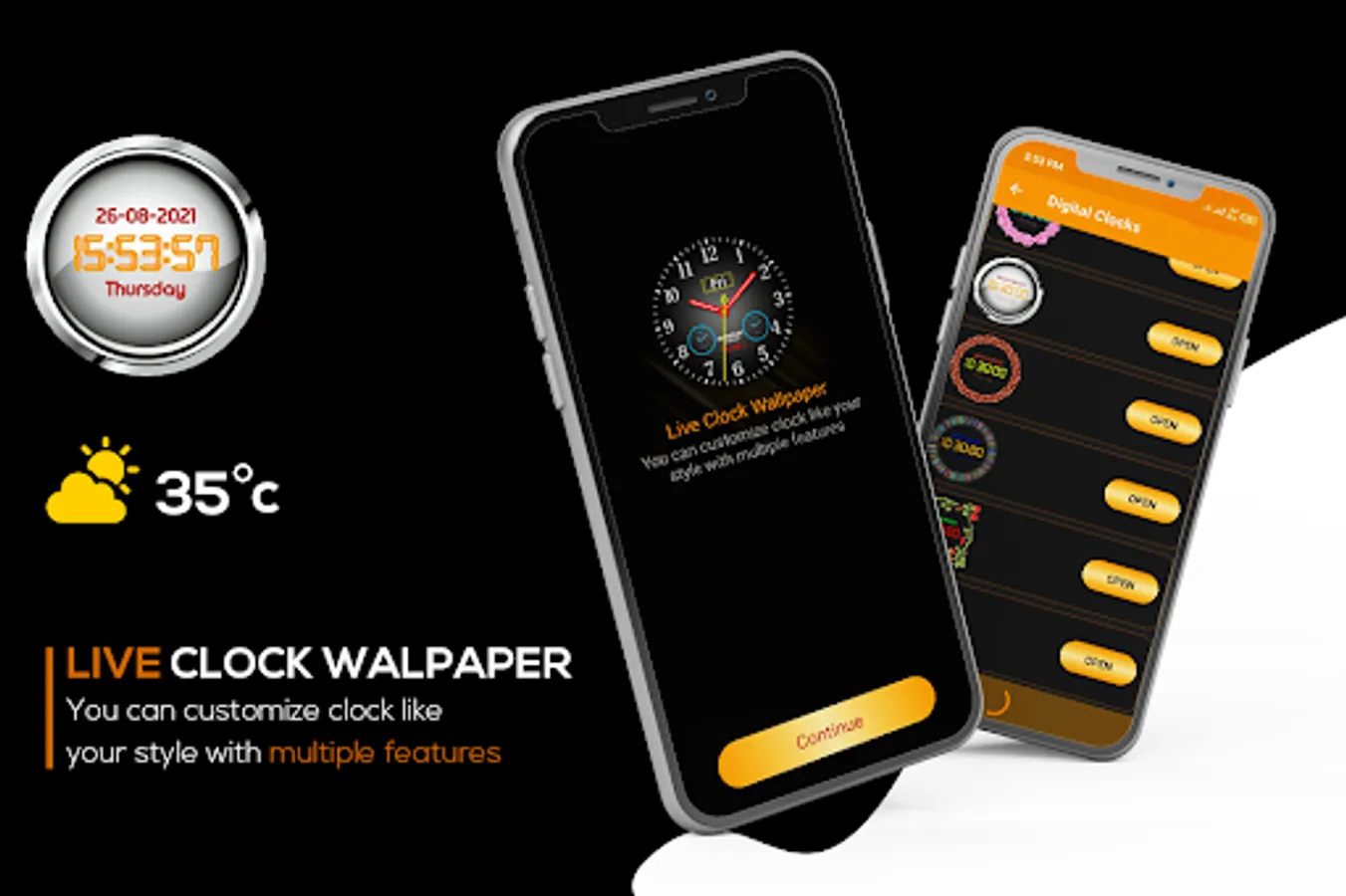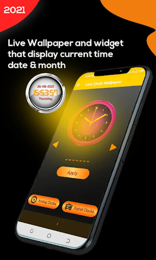 You can choose, from the setup menu multiple types of digital clock live wallpaper. This analog clock wallpaper display on comes with a set of backgrounds to choose from your own live wallpaper image gallery. The position and size of the clock live wallpaper 2021 for lock screen in this watch app can be changed and you can also turn on / off, digital clock widget and calendar. You can use clock live wallpaper & lock screen in your phone.