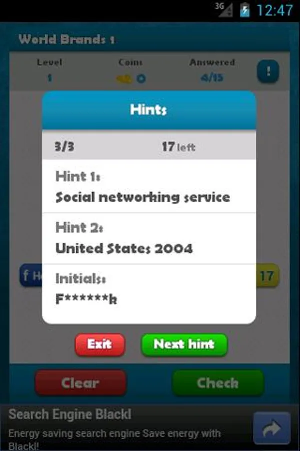 • Daily hint bonus - your loyalty will be awarded with 3 free hints every day