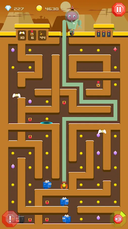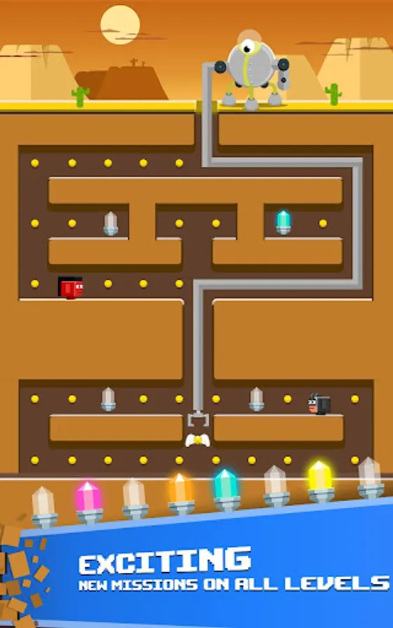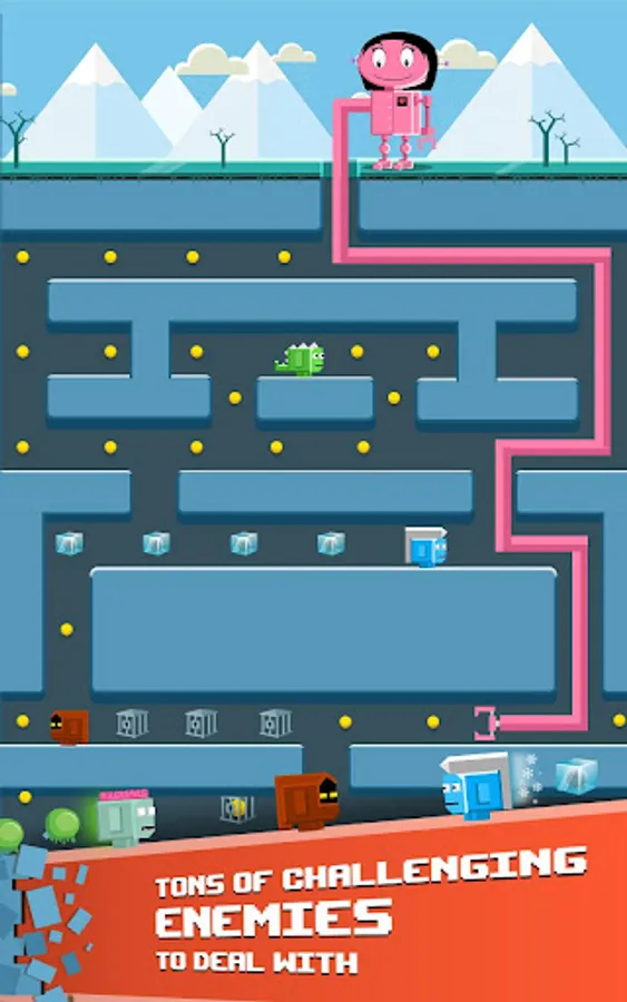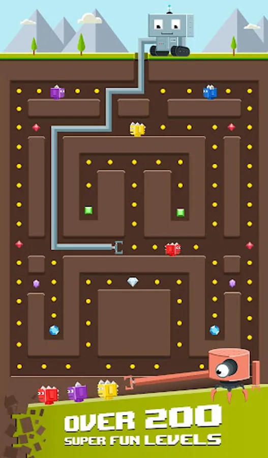 Help Diggi and the gang to return the stolen treasure from the little square creatures.