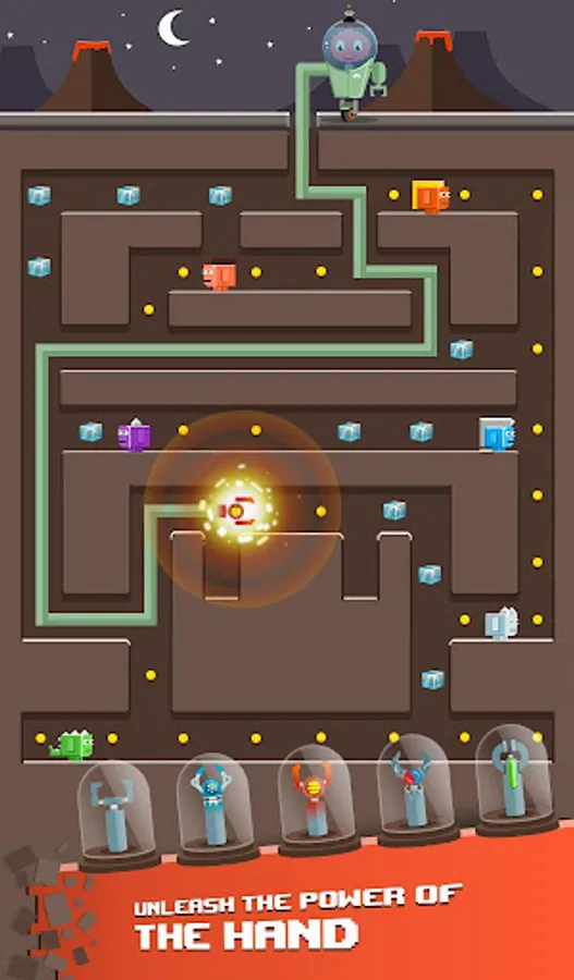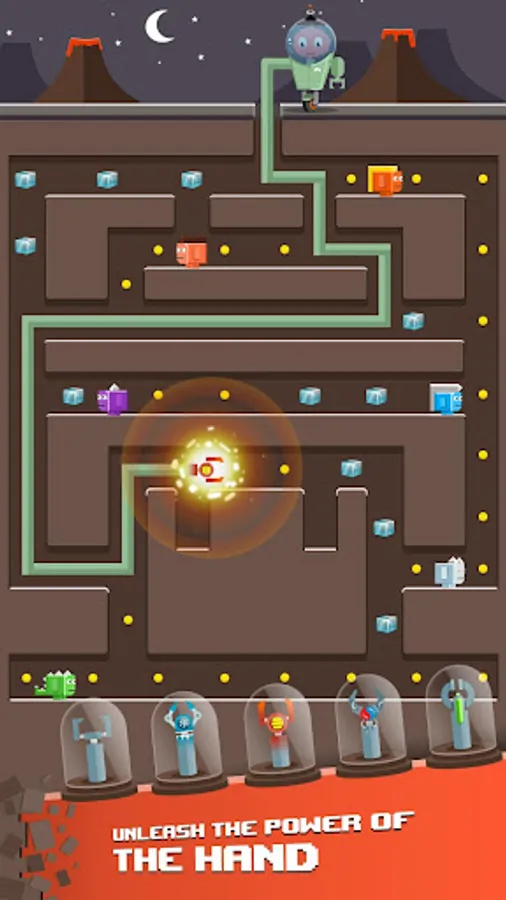 Collect gold and lots of other treasures to upgrade your powers by purchasing other robots and hands. Use the power of your hand to pass levels that have challenging missions and resistant enemies.