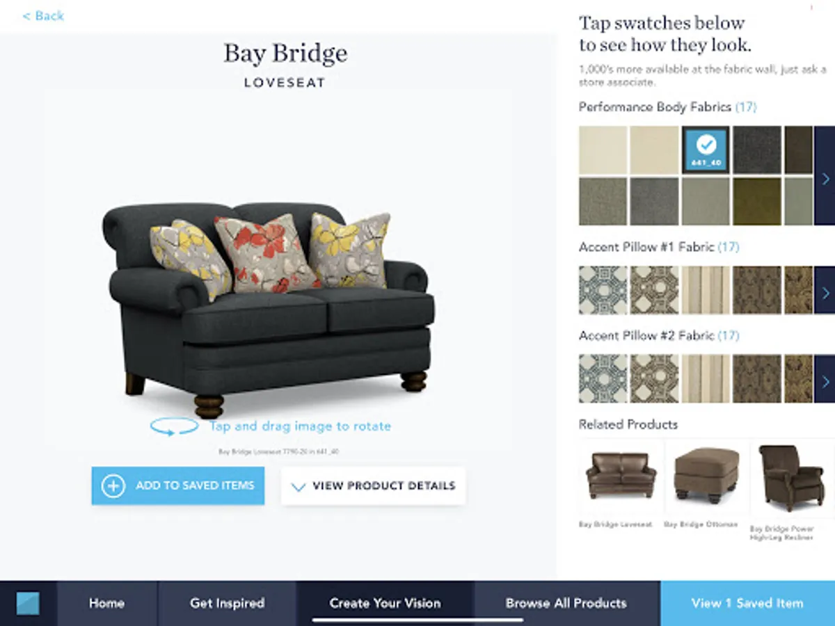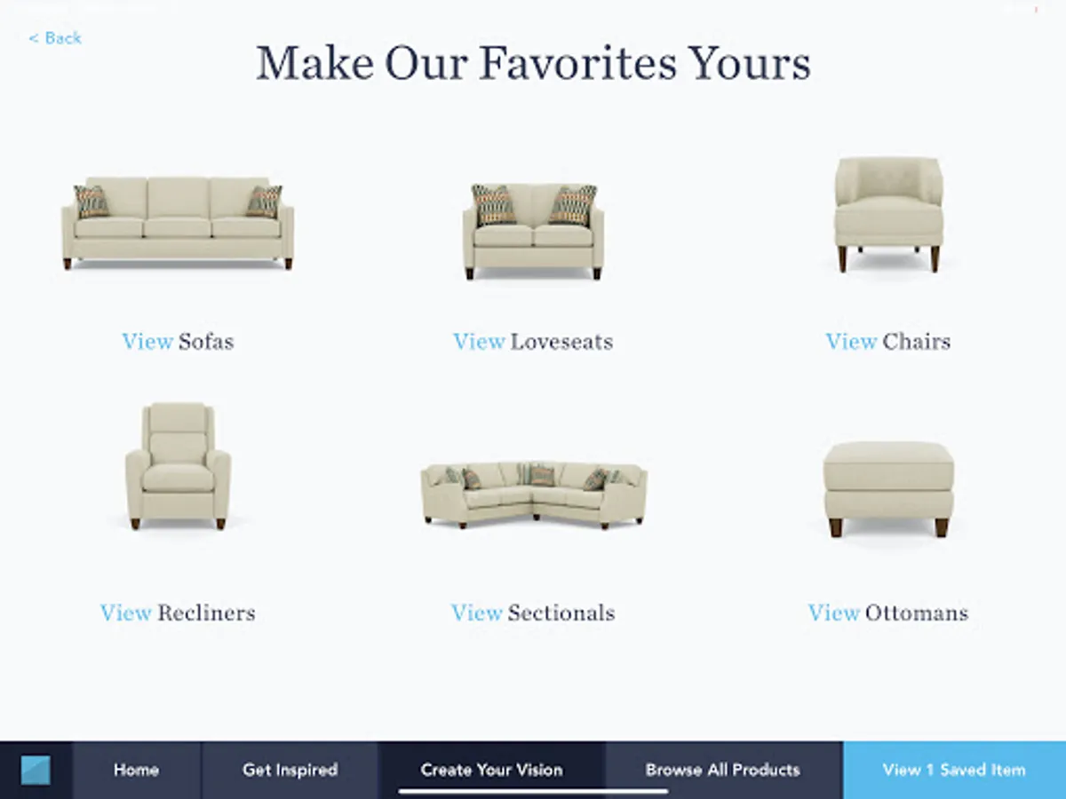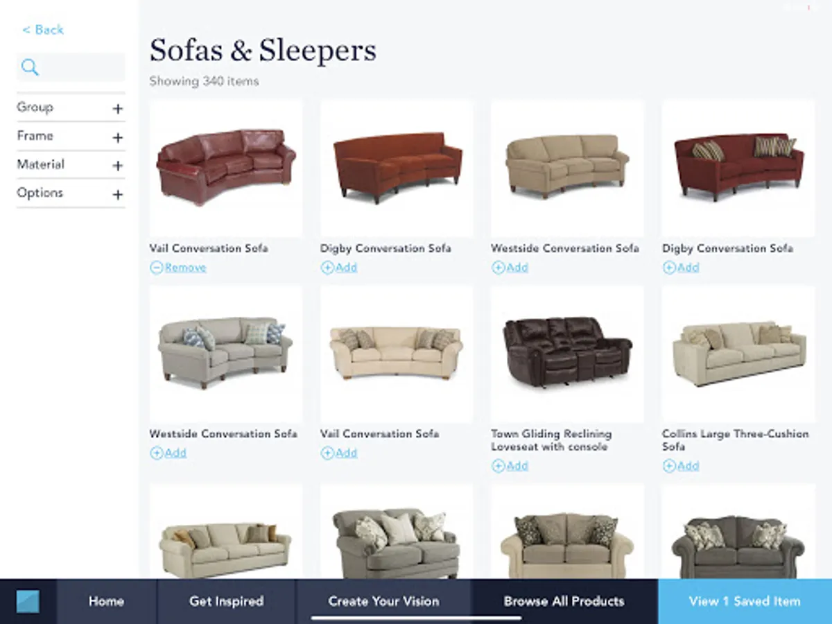• Shop our full collection of furniture—everything shown online is now available in the app.