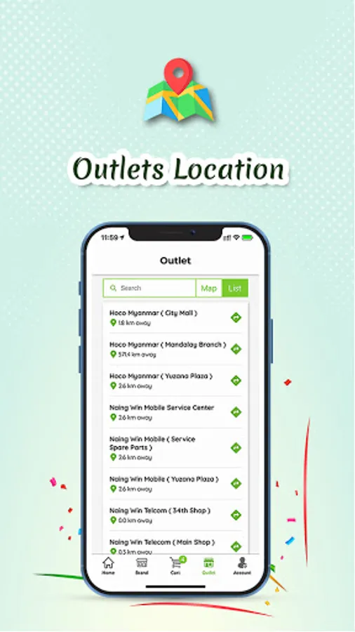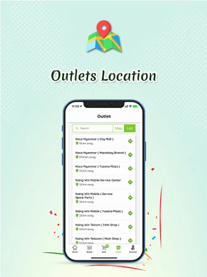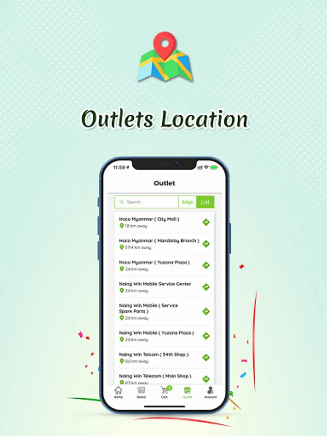 ✔ Manifest the brand outlets nearby on google map just one click for “Outlet” Tab.