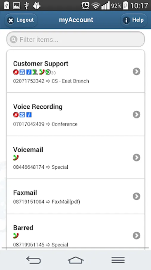 - Filter your numbers, to find certain numbers quickly in larger accounts.
