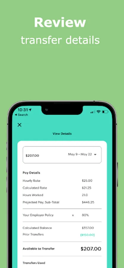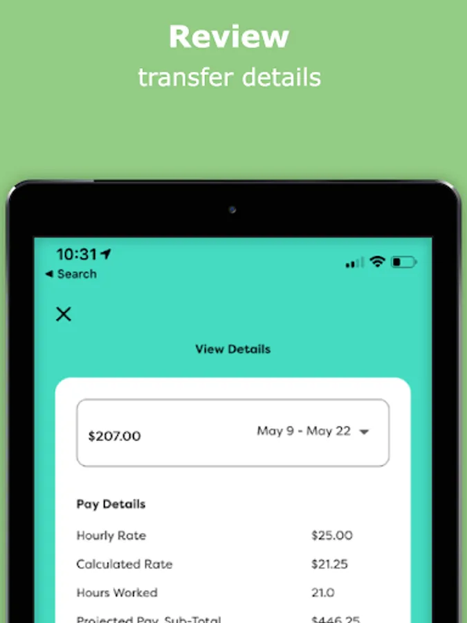 >>> Transferred wages and fees are automatically deducted from your paycheck on payday