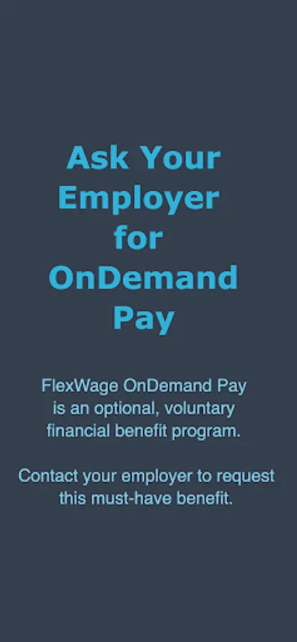FlexWage OnDemand Pay is an optional, voluntary financial benefit program. Contact your employer to request this must-have financial wellness benefit.