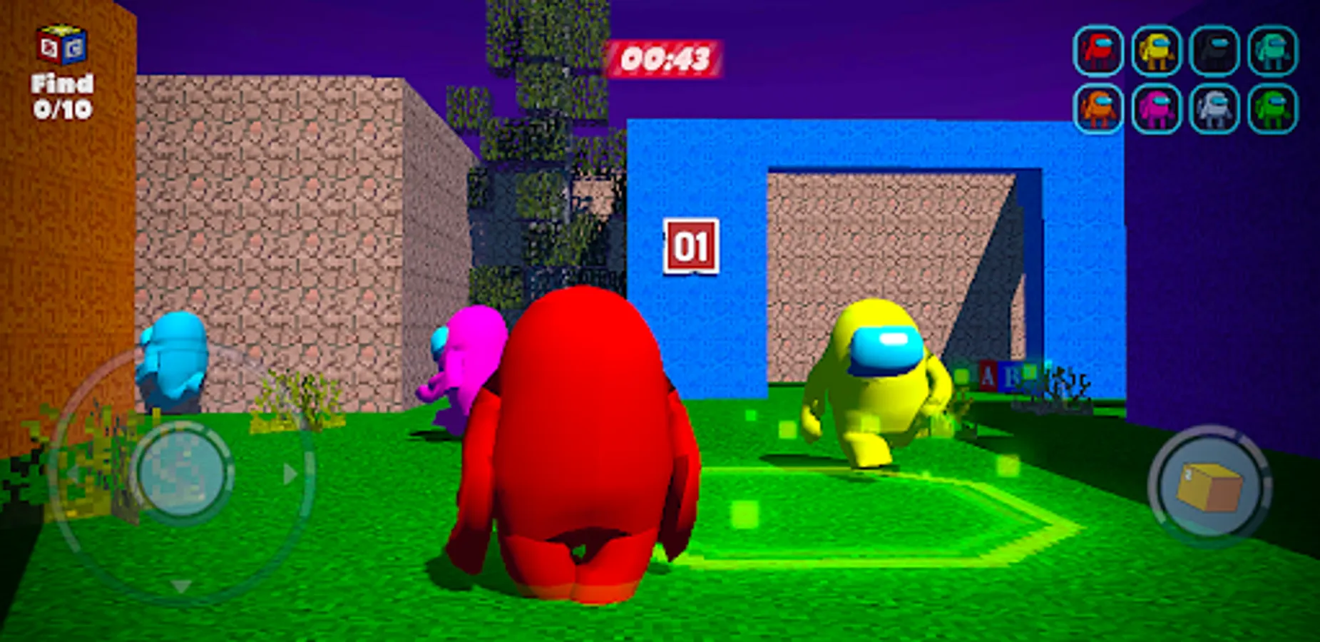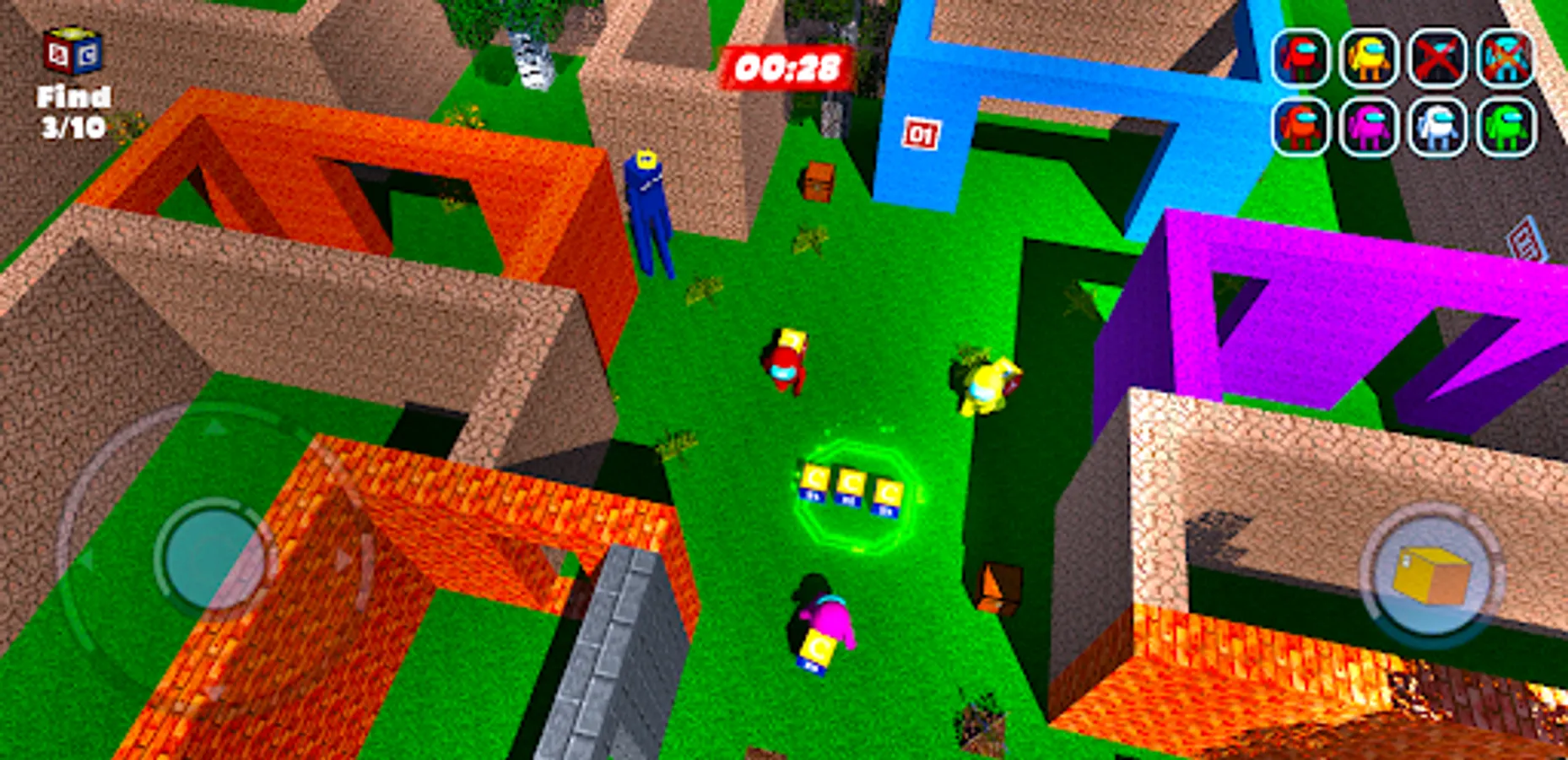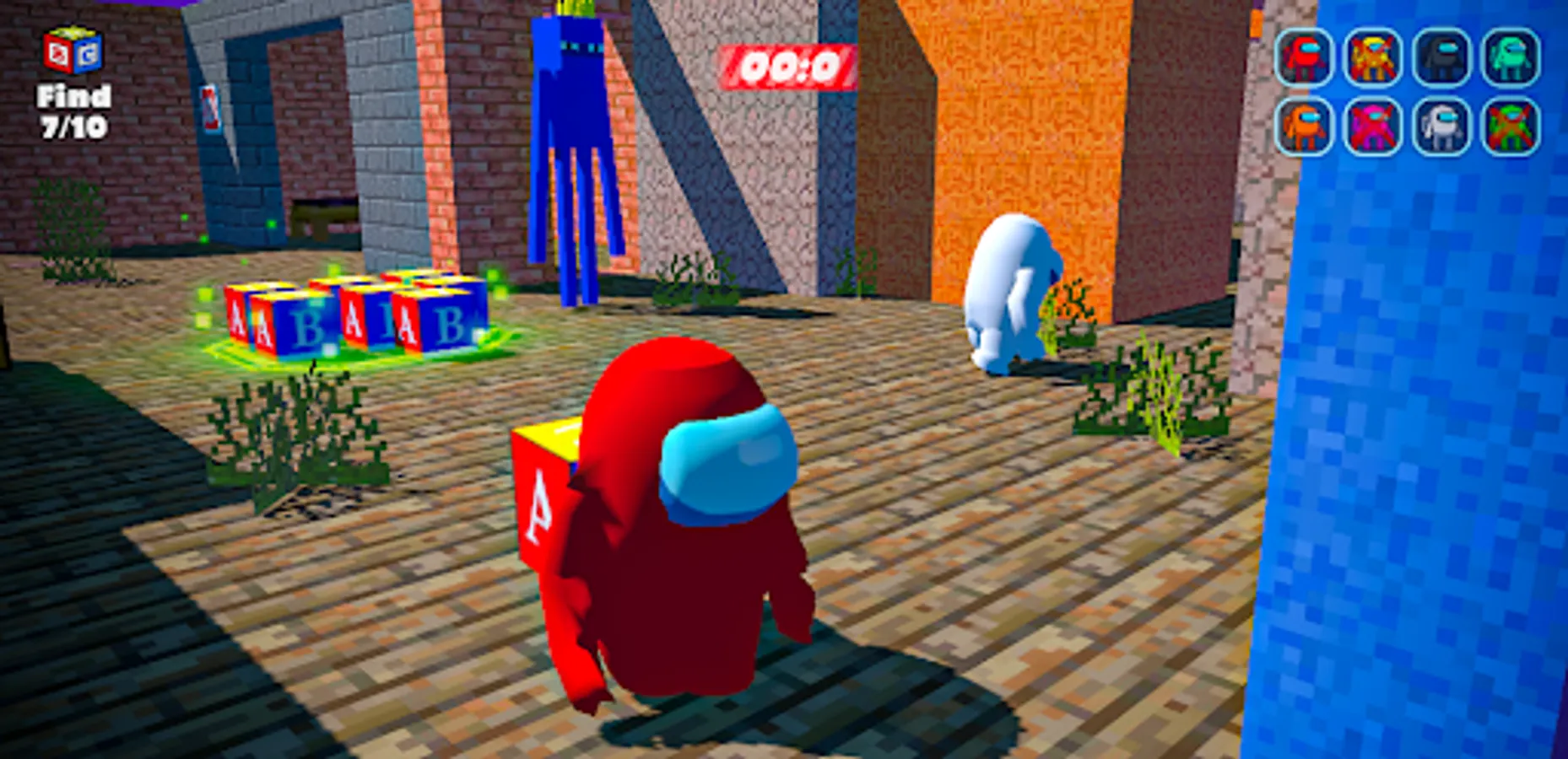 Search around the map and find the blocks with other players and don't froget to be careful from blue rainbow craftsman monster how searching for you and all players