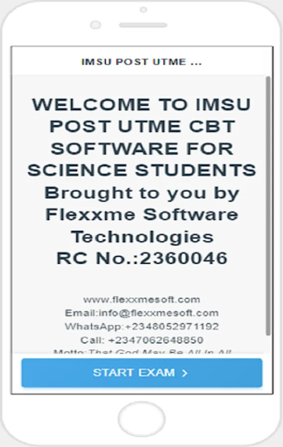 For higher test scores and convenience we have taken the pain to create a mobile app with all IMSU Post UTME past questions in it. This app is highly detailed, fully reviewed by university lecturers, if you are an IMSU aspirant who will be writing the coming IMSU Post UTME CBT, you should find this Mobile app very helpful. For Activation key visit www.flexxmesoft.com or call +2348052971192