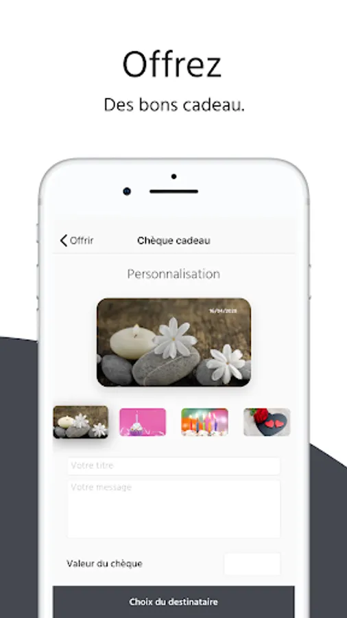 Face and body care: Matis, Bioreline (organic), TooFruit (for children), Bloomea (High Technology), Sweet Palping (anti-aging and slimming), personalized body massage, spices ...