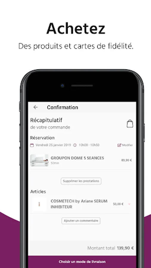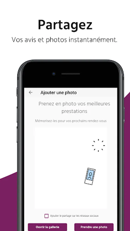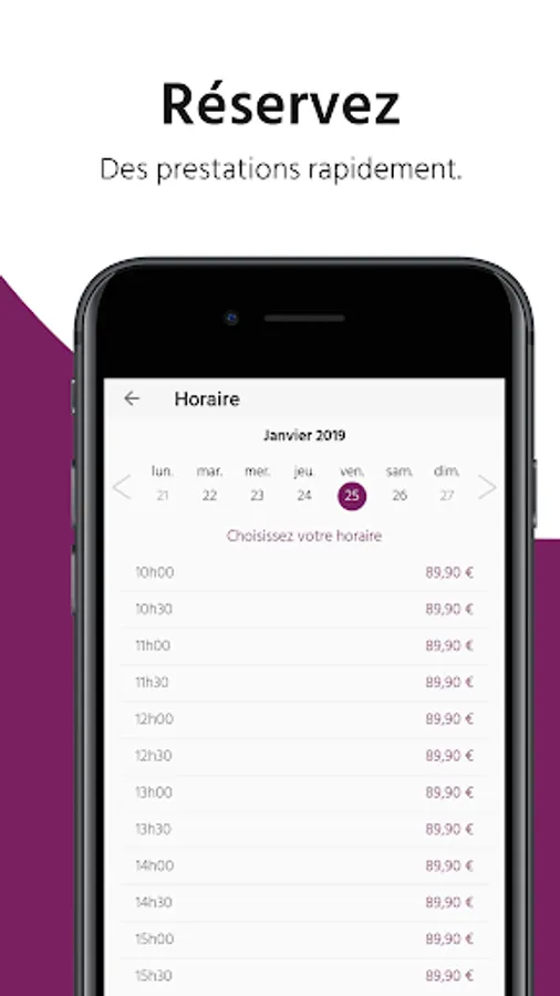 Your profile information is stored. Convenient ! You no longer have to fill in every time you want to reserve all your details. The application retains your information to save you time and book more easily. To keep track of your visits to the institute, you can also post photos and leave your opinion about the establishment directly via the app.