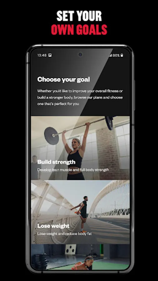 - Choose from a range of goals including Lose Weight, Tone, Build Muscle, ABT, and Mobility.