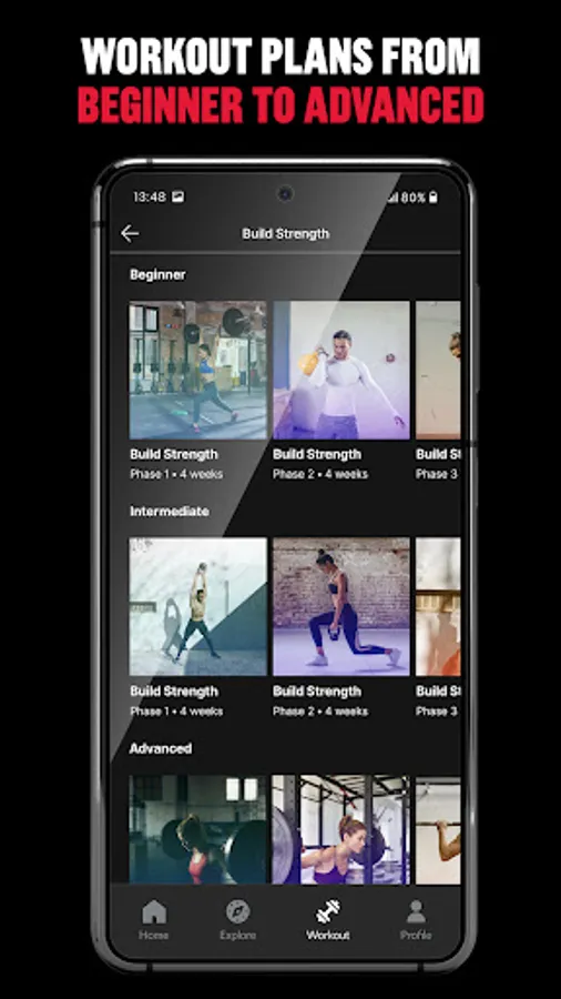 - Access a library of workout plans with video instructions from beginner to advanced.