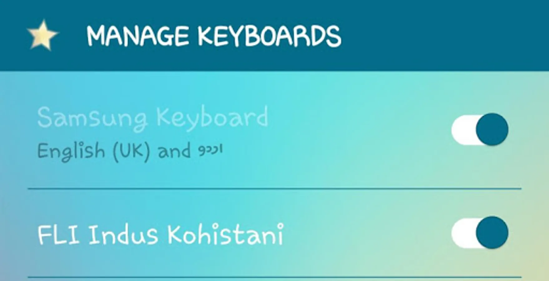 This IK Android keyboard supports all the unique characters of the language. The Kohistani language, also called Indus Kohistani belongs to Dardic group of languages, spoken in the Kohistan area of Khyber Pakhtunkhwa, Pakistan. There are books in this language and many people are already reading and writing in this language. This keyboard will enable the young generations of the Kohistani community to communicate in their language while using their cell phone (SMS), social media and internet.