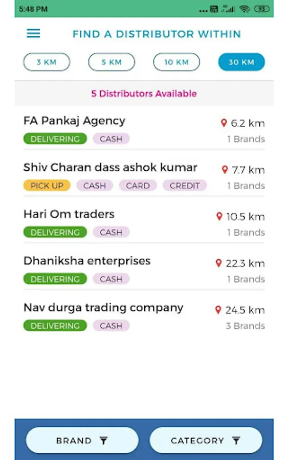 - Place orders to the most suitable distributors with multiple filters such as distance, brand
